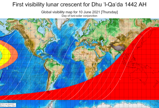 Therefore, after having completed 30 days of Shawwal, the first day of the month of Dhul Qa’ad 1442 A.H. will be on Saturday June 12th, 2021 for the entire region of North America.