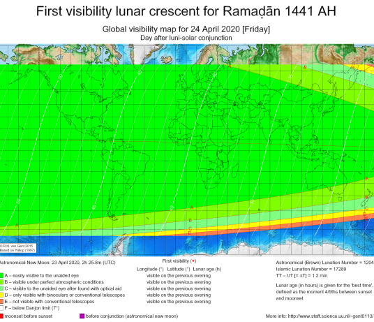 Therefore, the first day of the month of Ramadhan, 1441 A.H., will be on Saturday April 25th, 2020